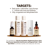 Reveal radiant, even-toned skin with our ultimate dark spot and blemish-fighting bundle. This powerhouse set combines our signature skin-brightening ingredients—kojic acid, arbutin, and glycolic acid—to help you fade dark spots, tackle blemishes, and restore your natural glow.